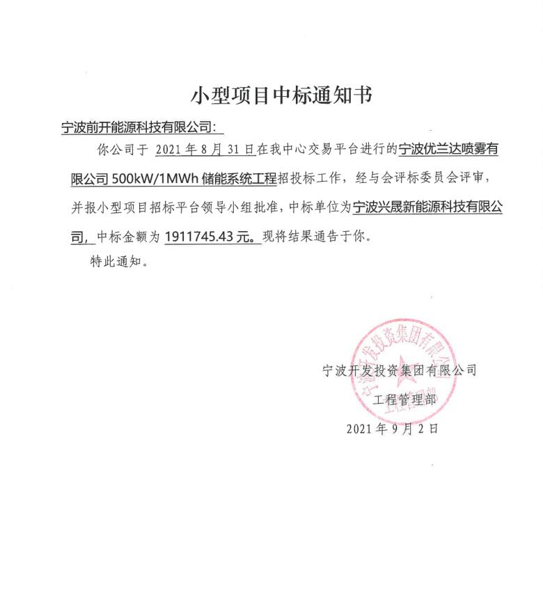 寧波前開能源科技有限公司 優蘭達500KW/1MWH用戶儲能開工儀式