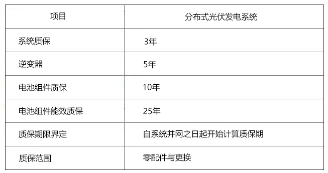 業主一次性投入建設成本,在自有企業屋頂建設電站,并交由興晟公司負責項目建設,所建設的電站贈送1~3年保險(包括一切險和相關責任險,受益人為屋頂業主)及運維服務 。 如果設備及材料采購為興晟公司則電站質保約定如下: